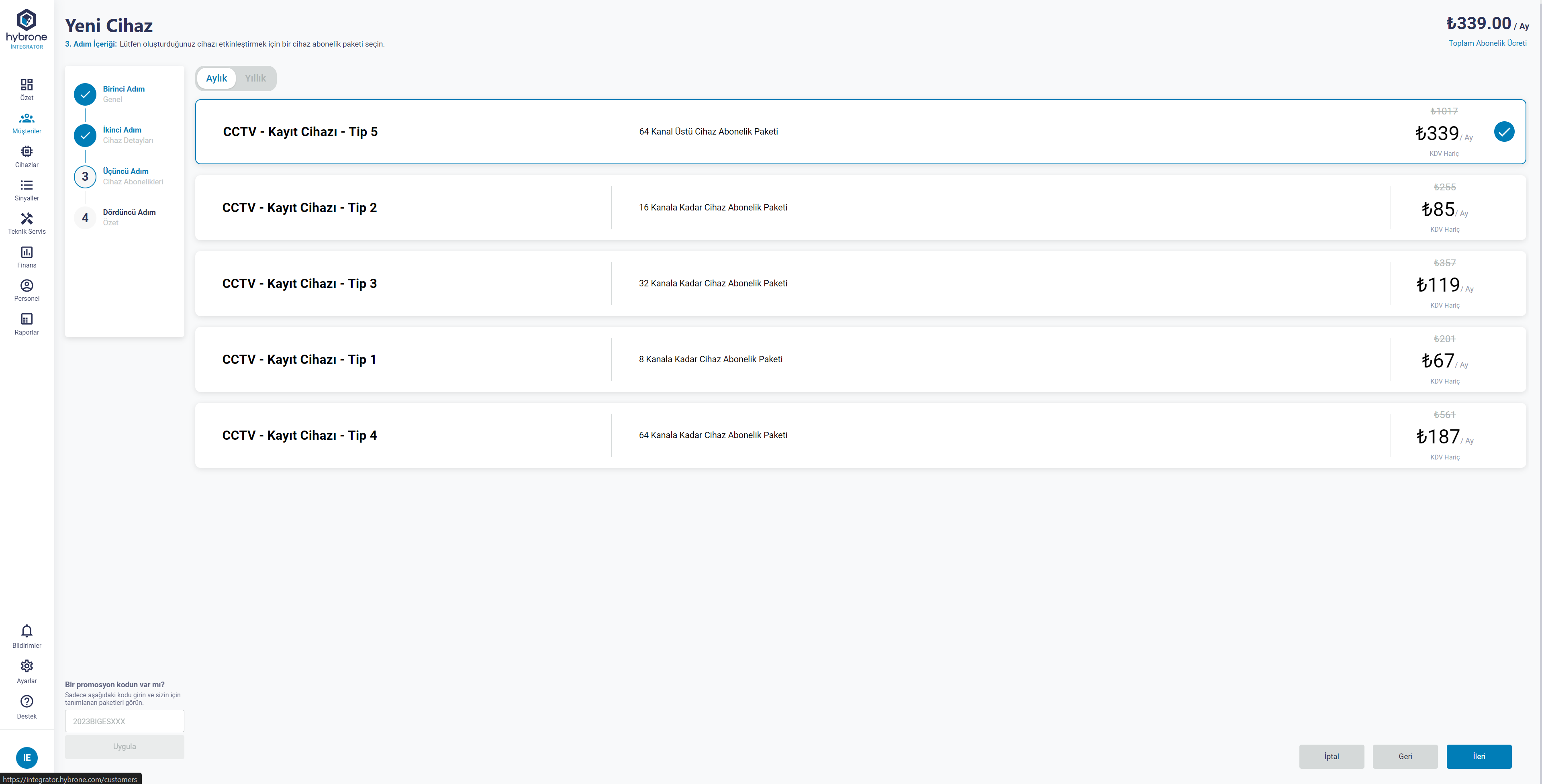 Bir Abonelik Paketi Seçiniz ve ileri butonuna tıklayınız.